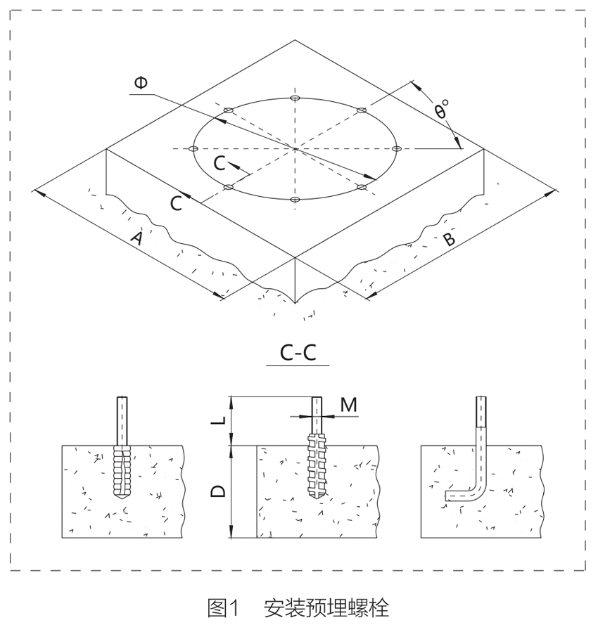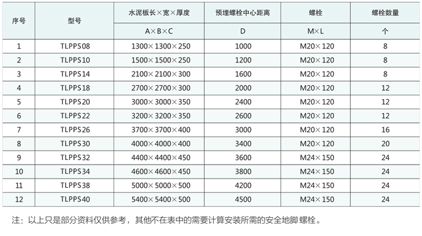 ※ 安裝時(shí)預(yù)埋螺栓以及水泥板的尺寸